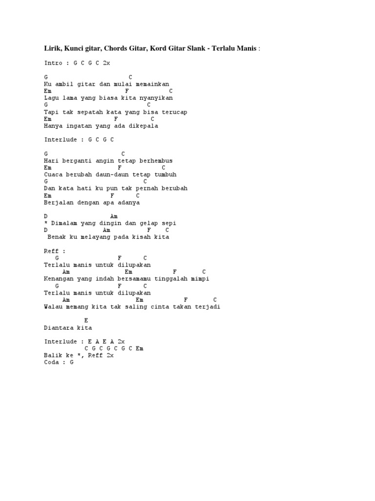 Chord Gitar Lagu Slank Ku Tak Bisa Chord Gitar Lagu Lagu Kenangan