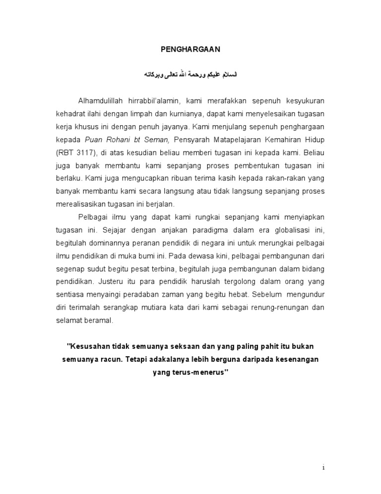 Contoh Folio 1 Penghargaan Syukur Alhamdulillah Kepada Allah S W T Kerana Dengan Berkat Dan Keizinan Dari Nya Maka Saya Telah Dapat Menyiapkan Tugasan Course Hero