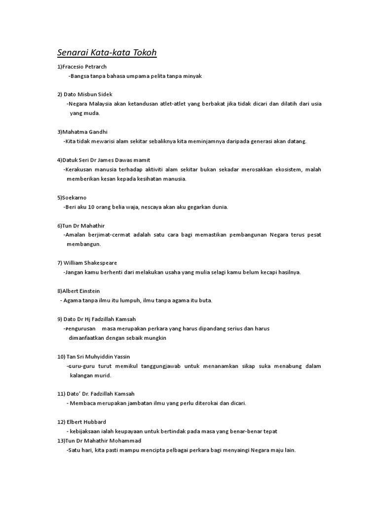 Senarai Kata Kata Tokoh Oleh Bekas Pelajar Cemerlang