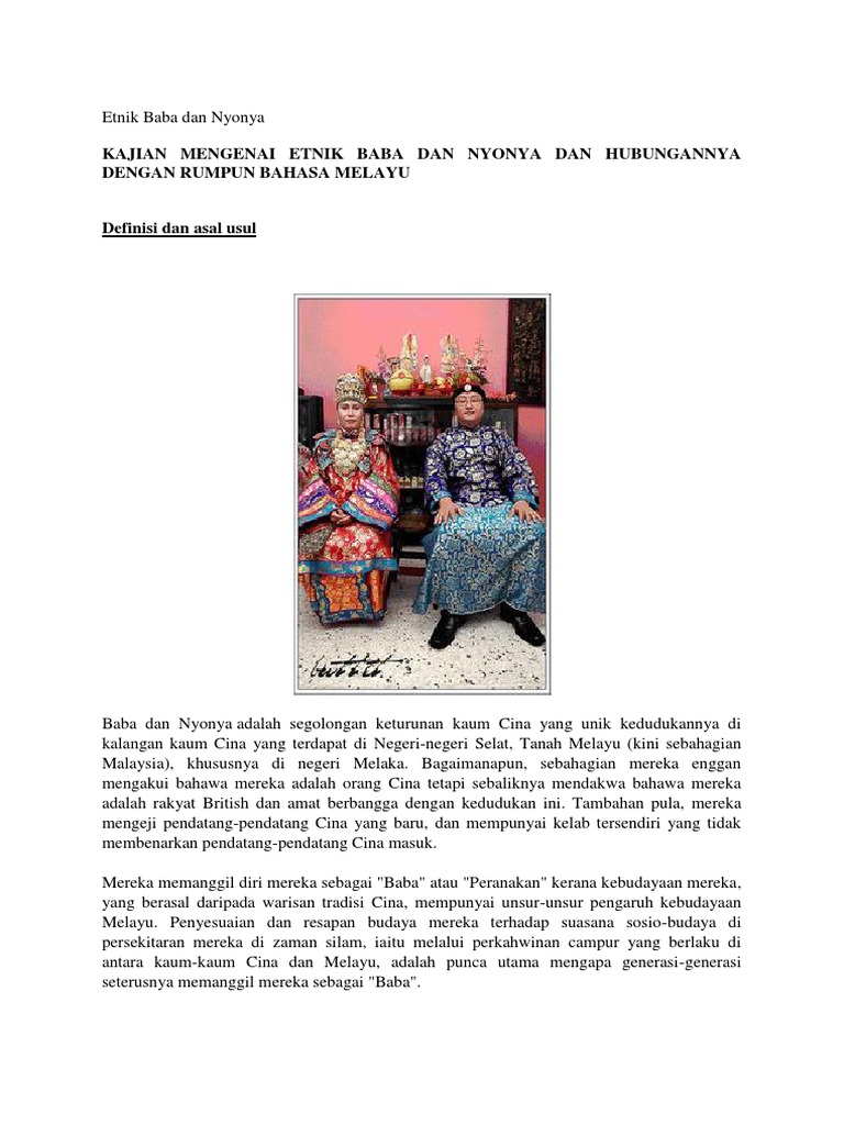 Adat Dan Budaya Etnik Di Malaysia Baba Dan Nyonya 205273