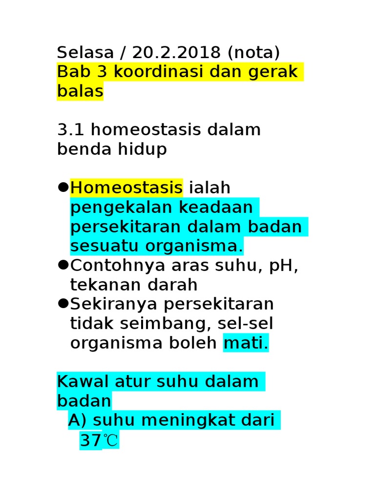 Bab 3 Koordinasi Dan Gerak Balas 3 1 Homeostasis Dalam Benda Hidup Pdf Free Download