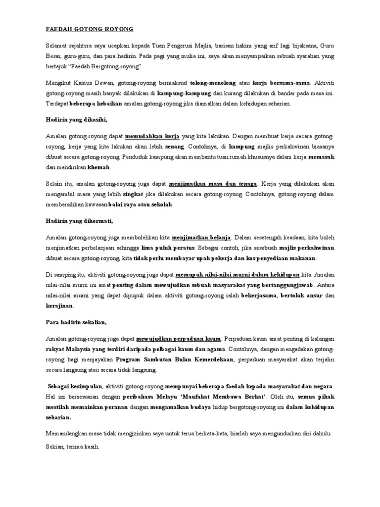Contoh Karangan Faedah Gotong Royong