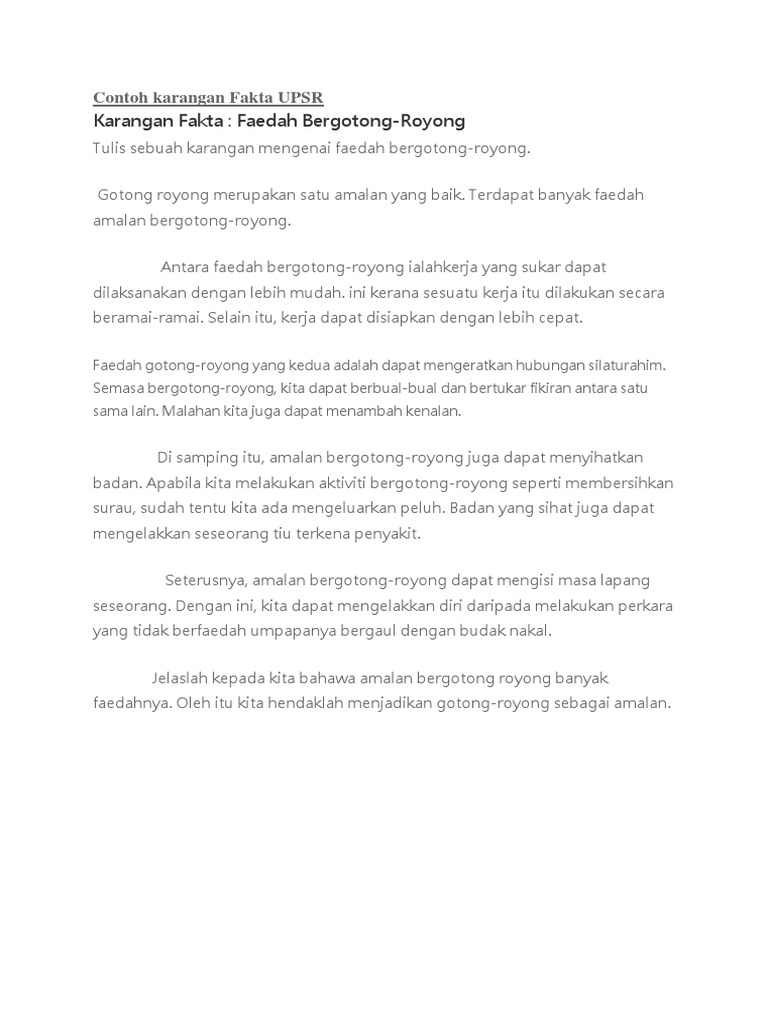 Contoh Karangan Fakta Upsr