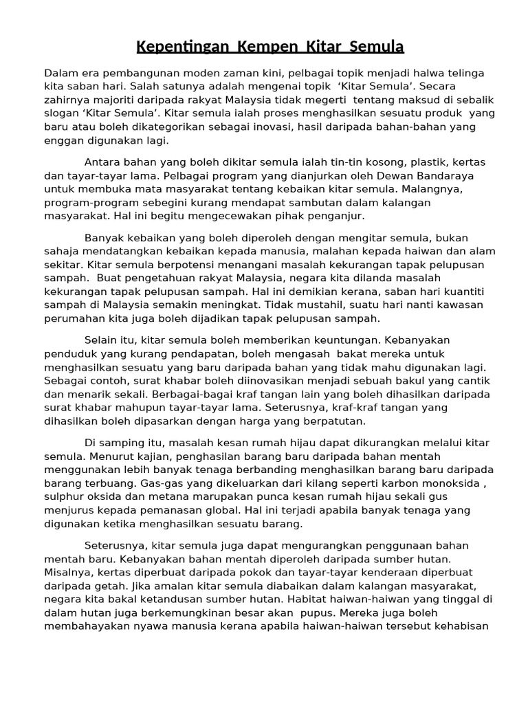 Contoh Karangan Faedah Program Kitar Semula Schoolnjc S Blog