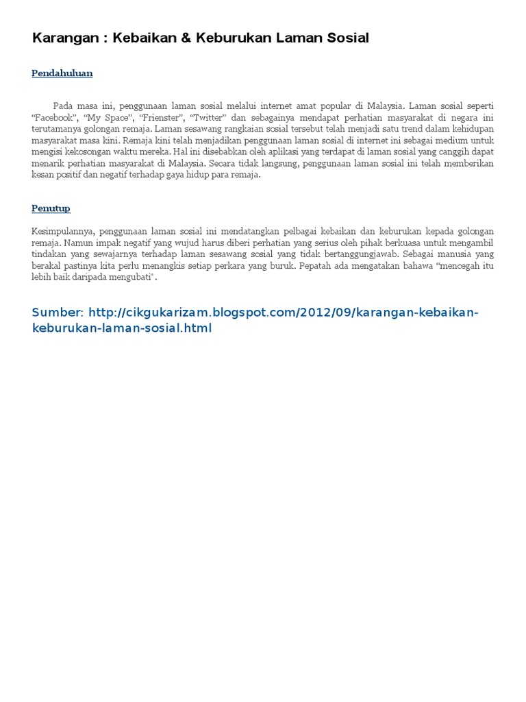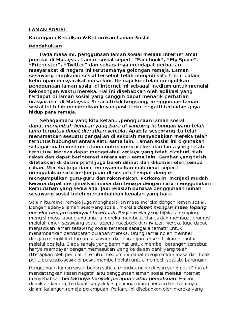 Kebaikan Dan Keburukan Laman Sosial Karangan