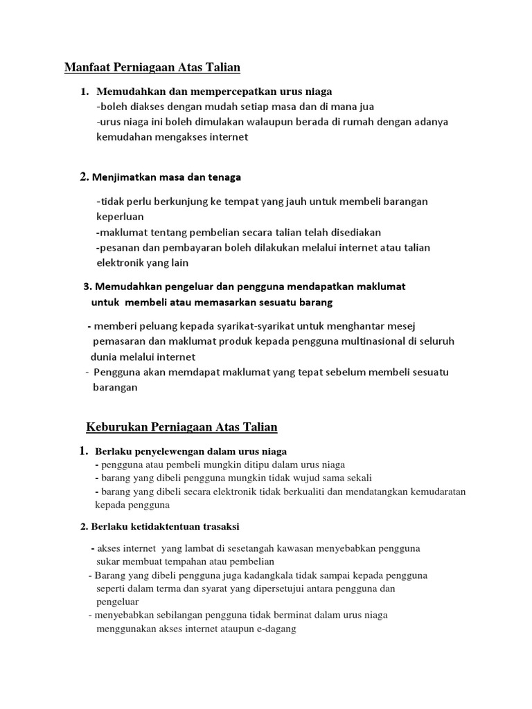 Karangan Kelebihan Dan Kelemahan Perniagaan Atas Talian