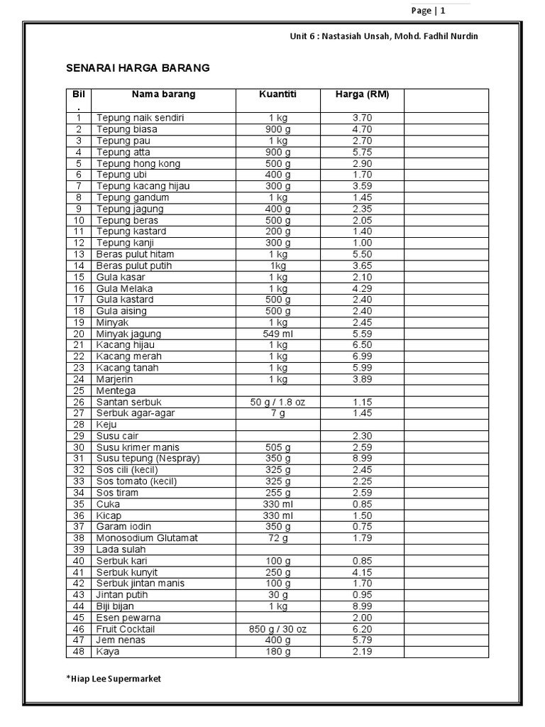 Senarai Harga Barang Runcit 2020 Terkini My Panduan
