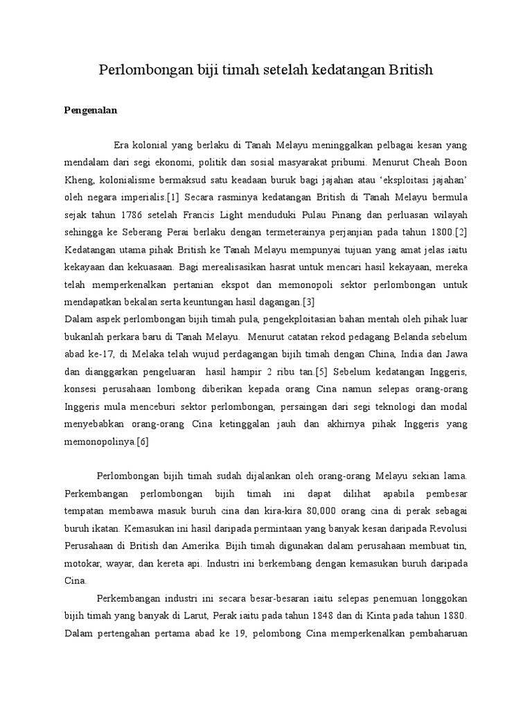 Perlombongan Biji Timah Setelah Kedatangan British Repaired Docx