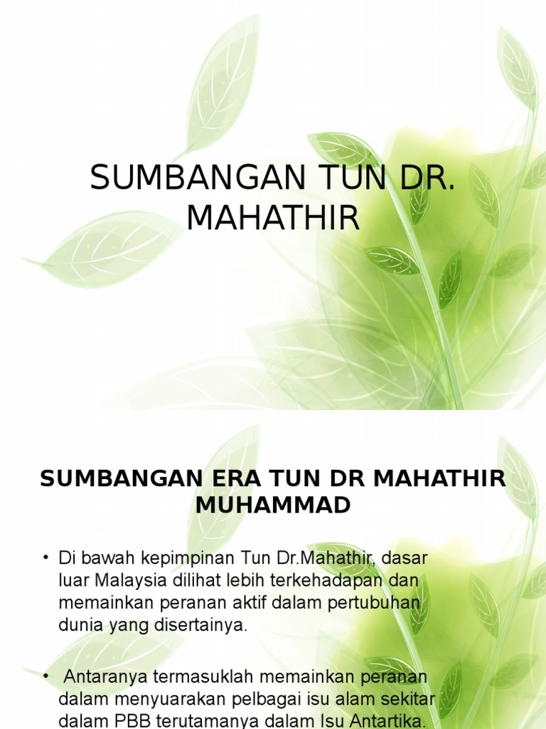 Tun dr mahathir bin mohamad mahu menjadikan malaysia sebuah negara maju dan rakyatnya mampu bersaing di peringkat global. Mahathir mohamad ikon yang tidak perlu diperkenalkan lagi telah ditabalkan sebagai perdana menteri ke 7 pada 10 mei 2018 setelah memenangi pilihan raya umum ke 14. Sumbangan dan kejayaan tun mahathir. Bagi mereka yang lahir pada tahun 90 an dan ke bawah pastinya ramai yang tahu lebih banyak tentang beliau.