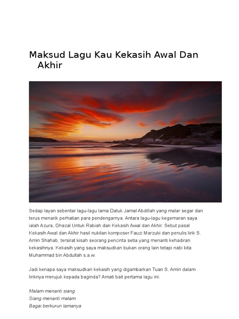 Maksud Lagu Kau Kekasih Awal Dan Akhir Malam Menanti Siang Siang Menanti Malam Bagai Berkurun Lamanya