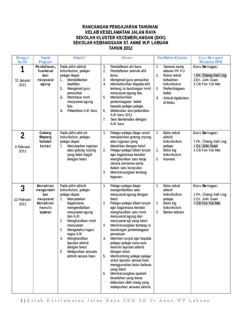 Rancangan Tahunan Kelab Keselamatan Jalan Raya Sekolah