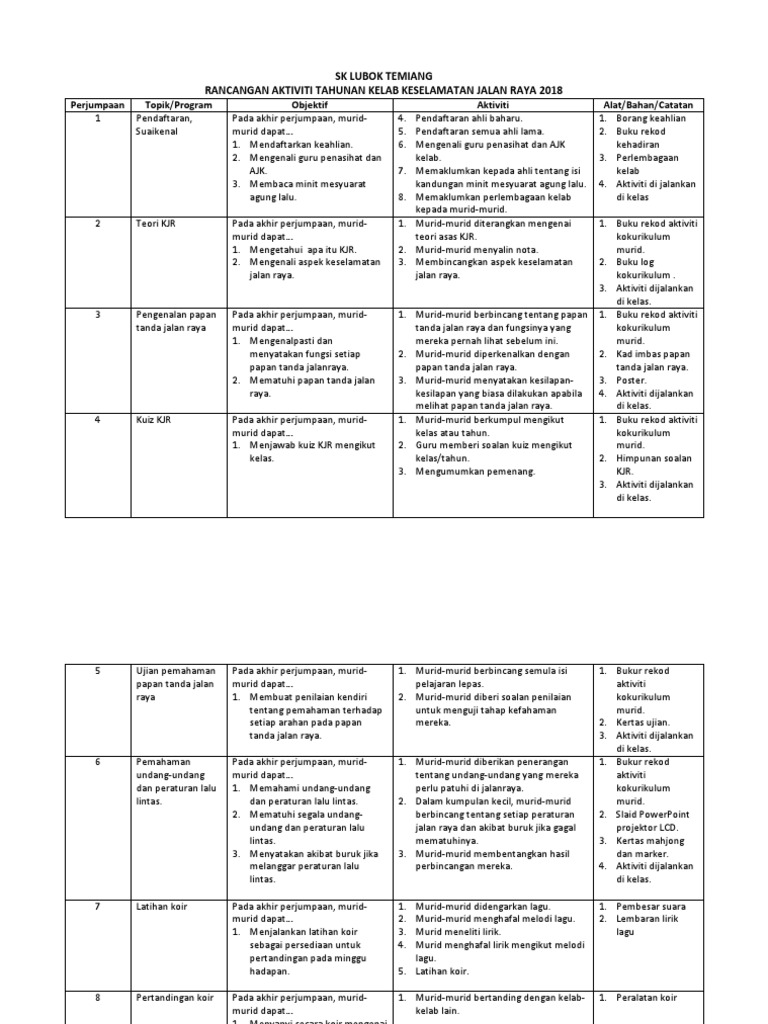 Rpt Kelab Keselamatan Jalan Raya 2018