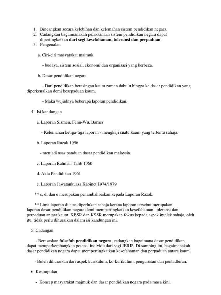 263051937 Kelemahan Dan Kelebihan Dasar Pendidikan Serta Cadangan Ke Arah Perpaduan