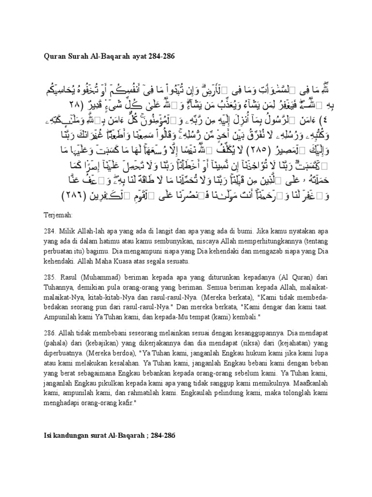 Surat Al Baqarah Ayat 284 286 Latin Dan Artinya Contoh Seputar Surat