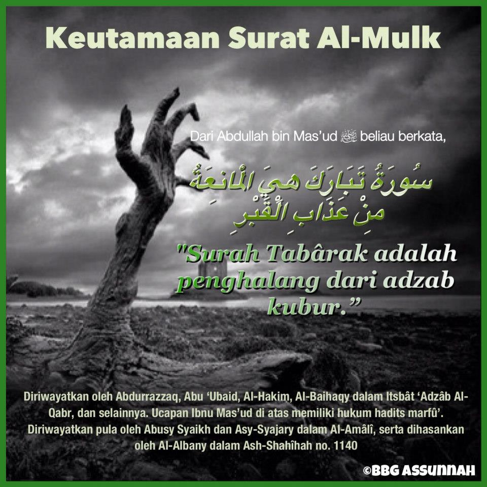 Terhindar dari siksa kubur. Surah ini tergolong surah makkiyah yang terdiri daripada 30 aya t. Mohd fadly samsudin email protected satu surah di dalam al quran sekiranya ia diamalkan maka orang yang membacanya apatah lagi dapat menghafaznya akan terlepas daripada azab kubur. Sebagaimana disebutkan dalam sebuah riwayat hadits disebutkan bahwa telah menceritakan pada kami ubaidullah bin abdil karim ia berkata telah menceritakan pada kami muhammad bin ubaidillah abu tsabit al madini ia berkata telah menceritakan pada kami ibnu abi hazim dari suhail bin abi sholih dari arfajah bin abdul wahid dari ashim bin abin nujud dari zarr dari abdullah bin mas.