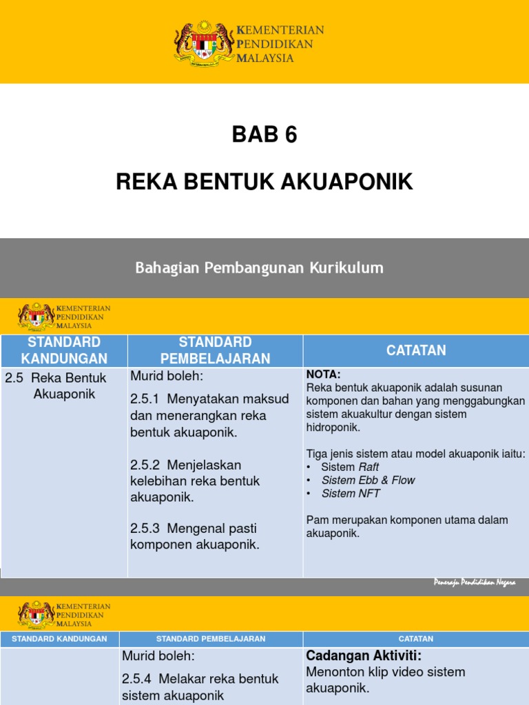 Bab 6 Reka Bentuk Akuaponik Bahagian Pembangunan Kurikulum