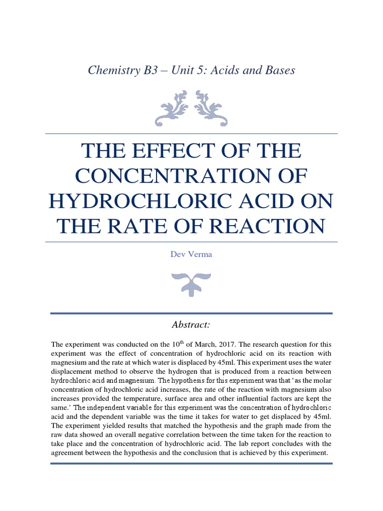 Lab Report On The Effect Of Concentration On The Rate Of Reaction Reaction Rate Chemical Reactions