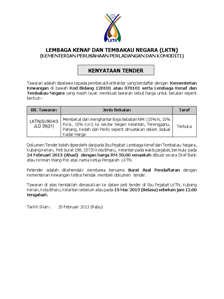 Http Www Lktn Gov My Images Sebutharga 2020 Iklantenderkawalankeselamatan2021 Pdf