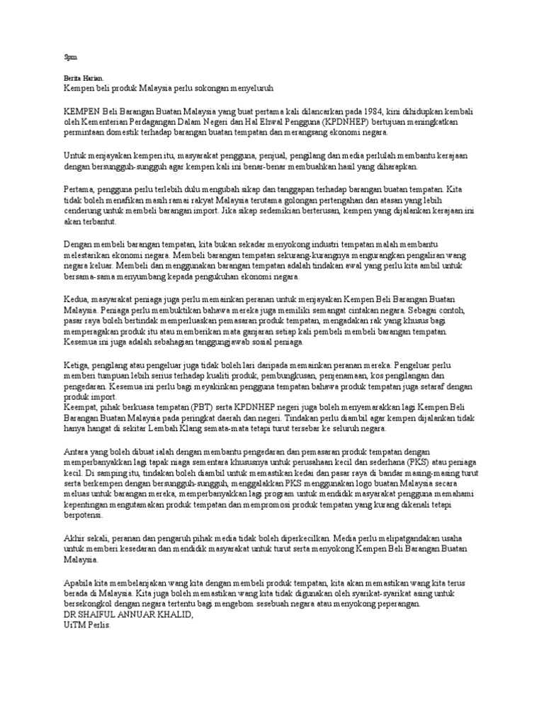 Kempen Belilah Contoh Karangan Beli Barangan Buatan Malaysia Tahun 5