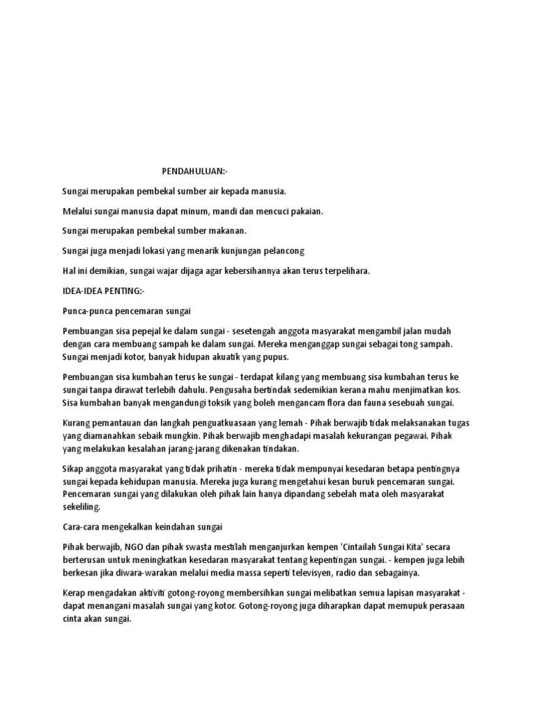 Kempen cintailah sungai kita. Kempen juga lebih berkesan jika diwara warakan melalui media massa seperti televisyen radio dan sebagainya. Kempen cintailah sungai kita peringkat negeri perak telah dilancarkan dengan rasminya oleh tan seri ramli ngah talib menteri besar perak darul ridzuan pada hari selasa 18 mei 1993 bertempat di taman rekreasi sungai perak kuala kangsar. Laporan program cintai sungai kita anjuran kelab alam sekitar smk taman nusa damai pada 3 april yang lalu kelab alam sekitar smk taman nusa damai telah menganjurkan program cintai sungai kita. Mewujudkan kesedaran tentang pentingnya sungai dalam kehidupan setiap individu bagimenimbulkan keinginan untuk sama sama memelihara dan mencintai sungai.