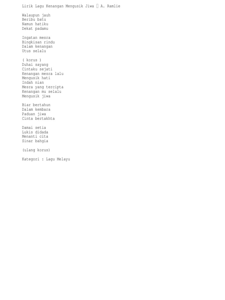 Kenangan Mengusik Jiwa Lirik A Ramlie Kkbox