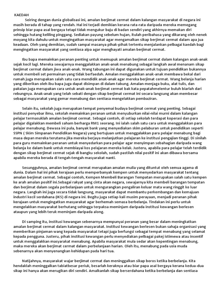 Contoh Karangan Kepentingan Amalan Berjimat Cermat Dalam Kalangan Masyarakat