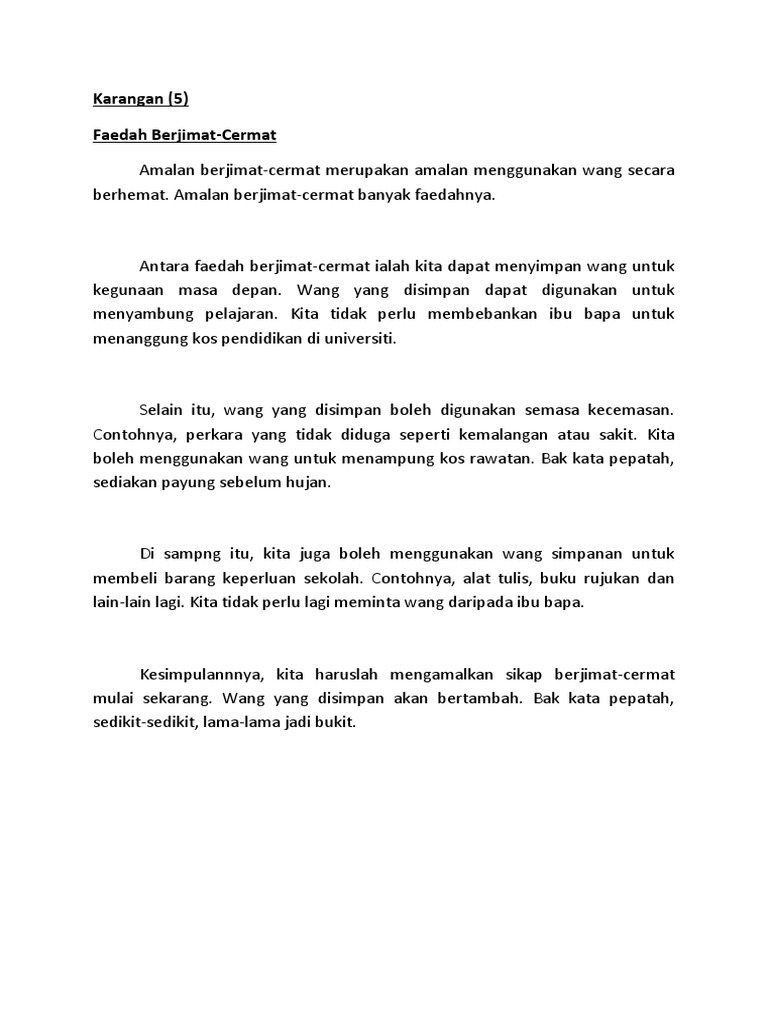 Kepentingan amalan berjimat cermat. Setiap pengguna tidak dapat melepaskan diri daripada kepompong inflasi. Seperti pepatah malang tidak berbau iaitu manusia tidak dapat menduga segala bencana atau kecemasan yang terdiri daripada menghidap penyakit kemalangan kebakaran dan sebagainya. Jika ditelusuri secara mendalam kepentingan amalan berjimat cermat dalam kehidupan ialah membantu seseorang ketika susah seperti orang mengantuk disorongkan bantal. Kepentingan amalan berjimat cermat dasawarsa ini negara kita telah dilanda oleh gelombang inflasi secara global.