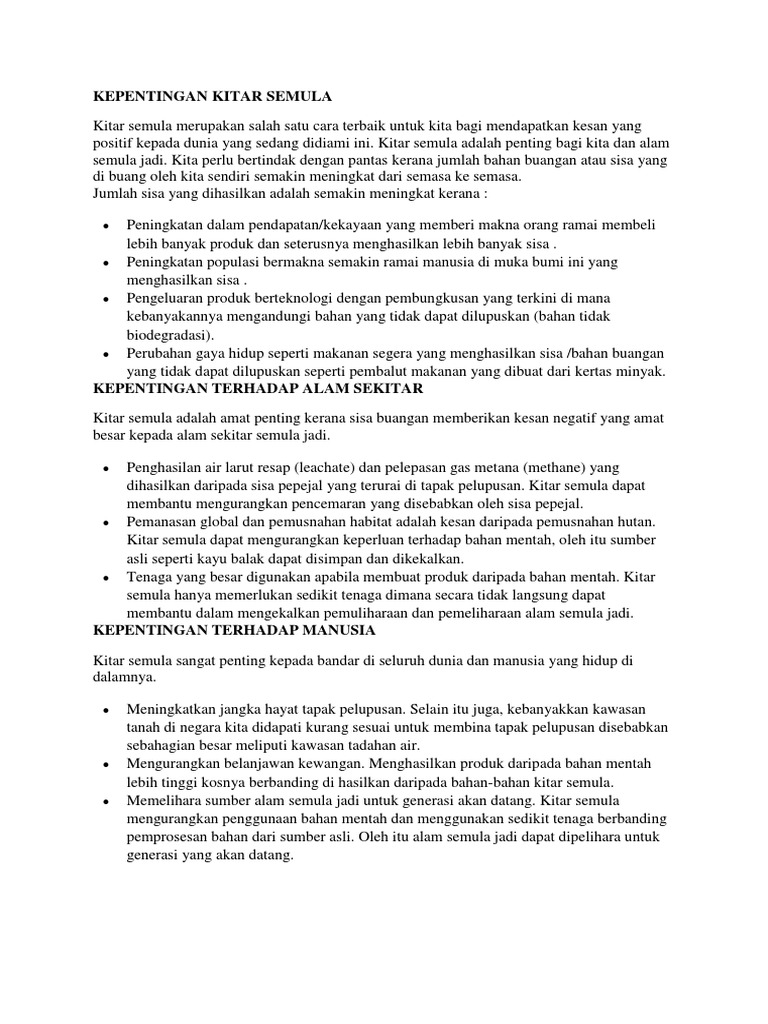 Recycle Kitar Semula Kepentingan Kepada Manusia Dan Alam Sekitar