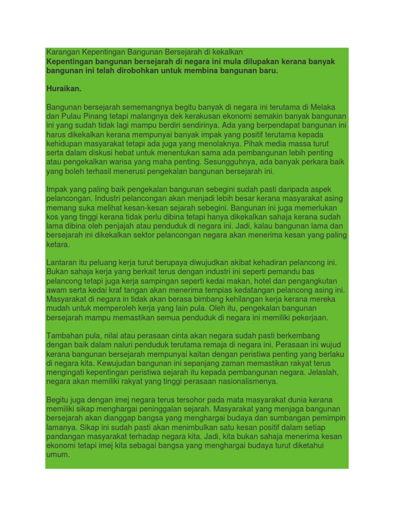 Kepentingan Mengekalkan Bangunan Bersejarah Di Malaysia Essaytix