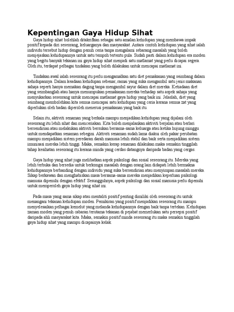 Kepentingan Mengamalkan Gaya Hidup Sihat Docx