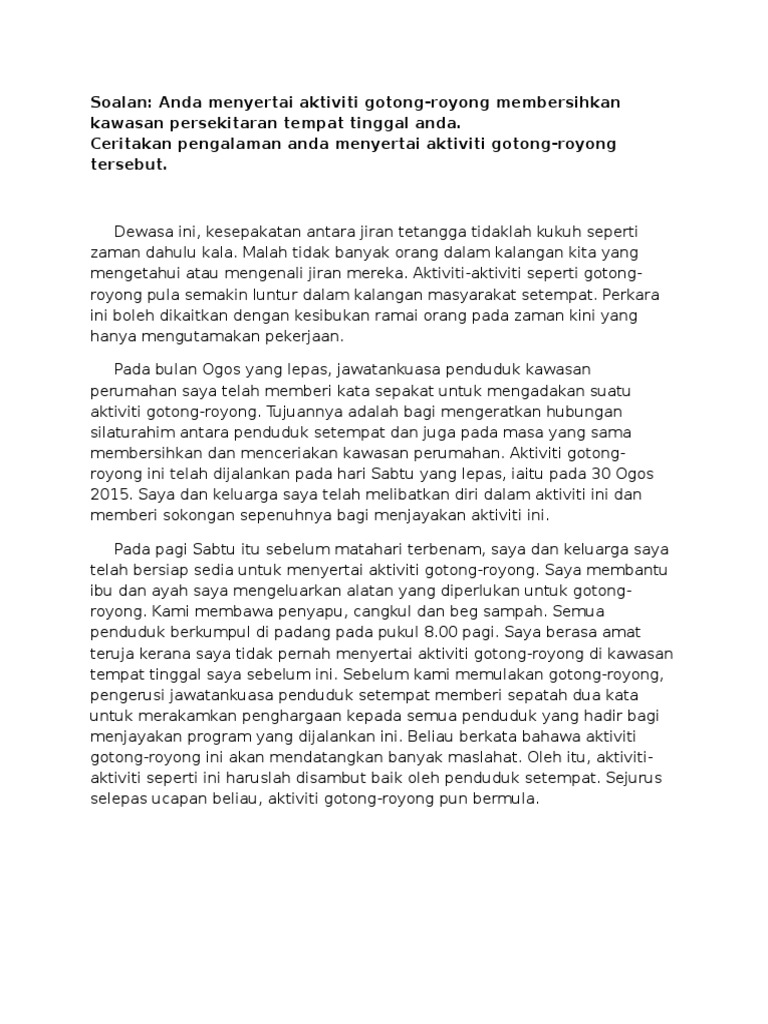 Karangan Pengalaman Aktiviti Gotong Royong Docx