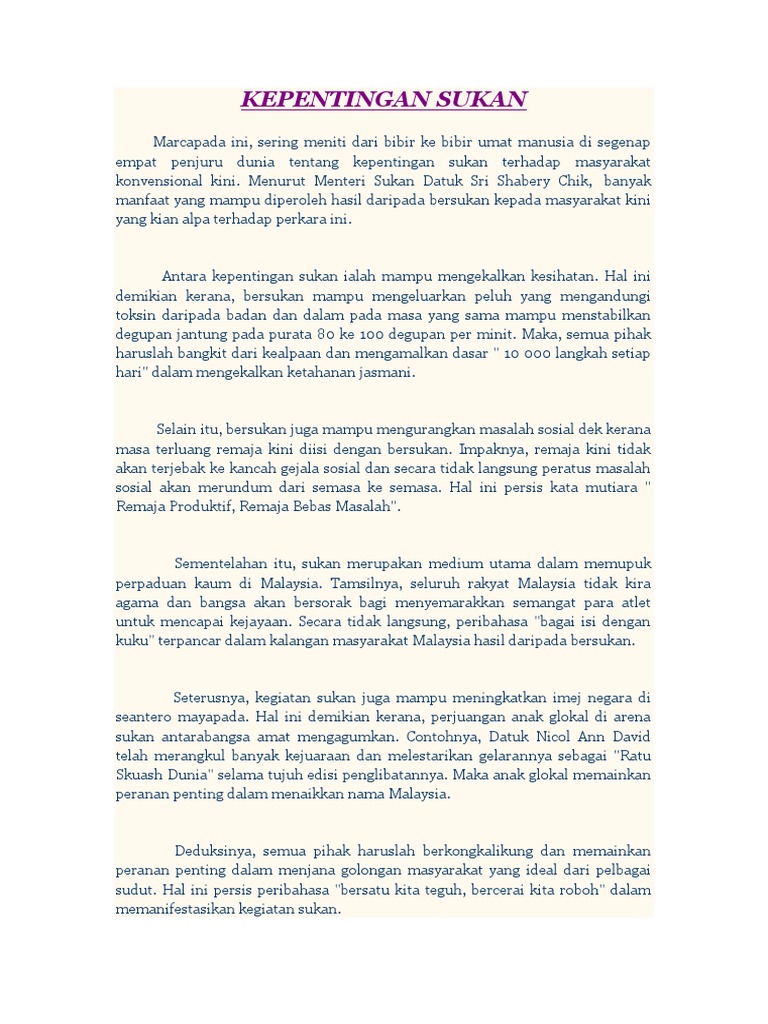 Contoh Karangan Hari Sukan Contoh Xis Cute766