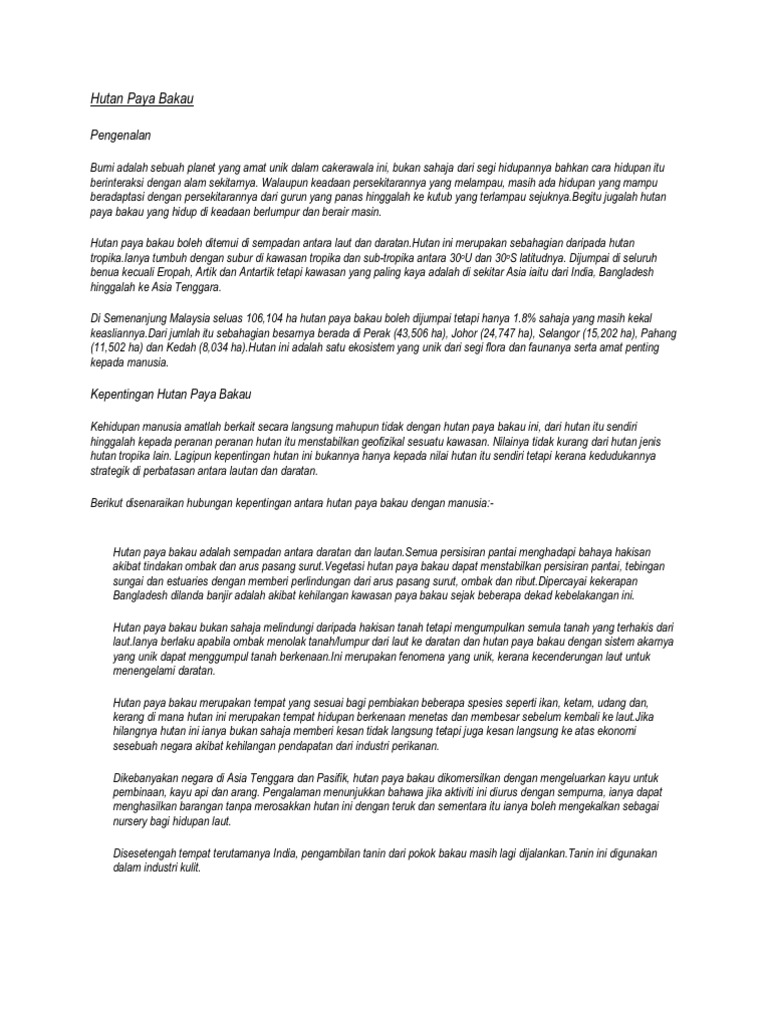 Kepentingan Hutan Paya Bakau