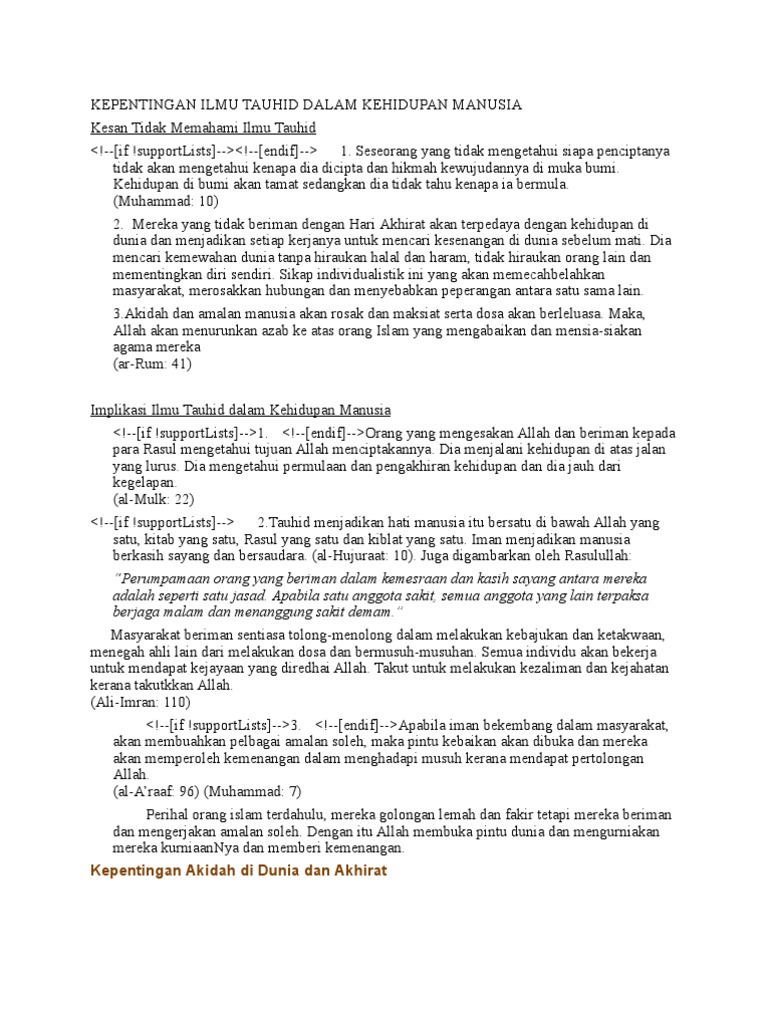 Kepentingan Ilmu Tauhid Dalam Kehidupan Manusia