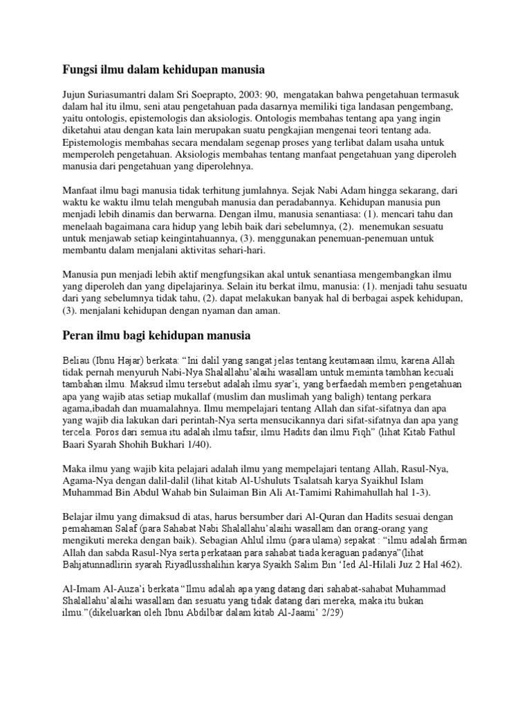 Doc Pentingnya Ilmu Bagi Kehidupan Fadlur Rahman Academia Edu