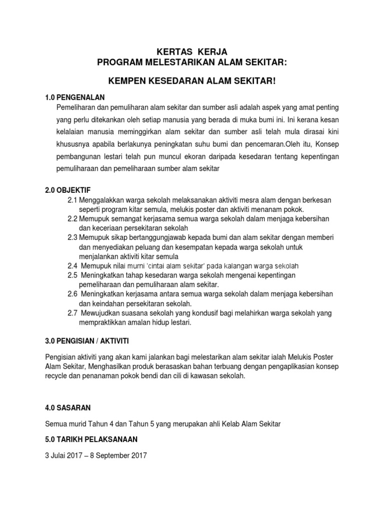 Kertas Kerja Program Melestarikan Alam Sekitar Kempen Kesedaran Alam Sekitar