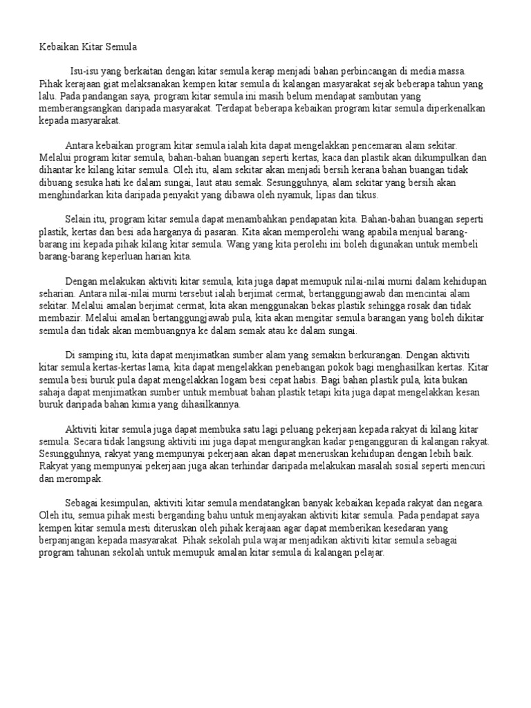 Kepentingan Kitar Semula Karangan Spm