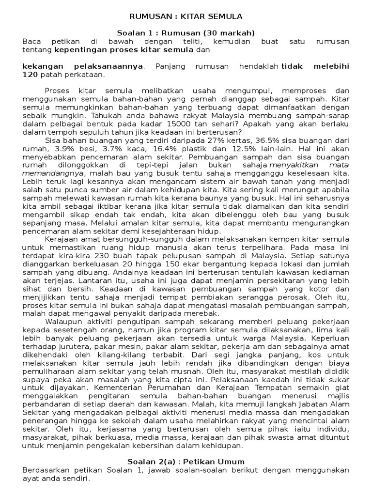 Cuit Cuit Bahasa Karangan Spm Bahagian A Ii Kitar Semula