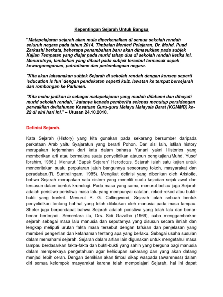 Kepentingan Mata Pelajaran Sejarah Karangan Spm
