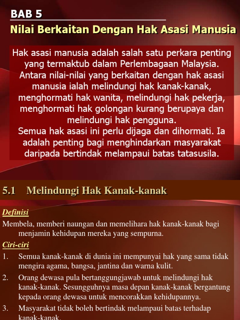 Bidang 5 Nilai Berkaitan Dengan Hak Asasi Manusia