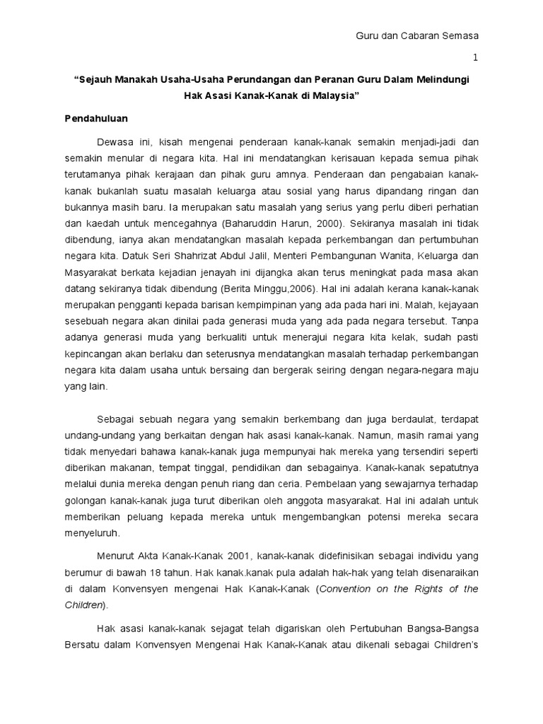 Sejauh Manakah Usaha Usaha Perundangan Dan Peranan Guru Dalam Melindungi Hak Asasi Kanak Kanak Di Malaysia