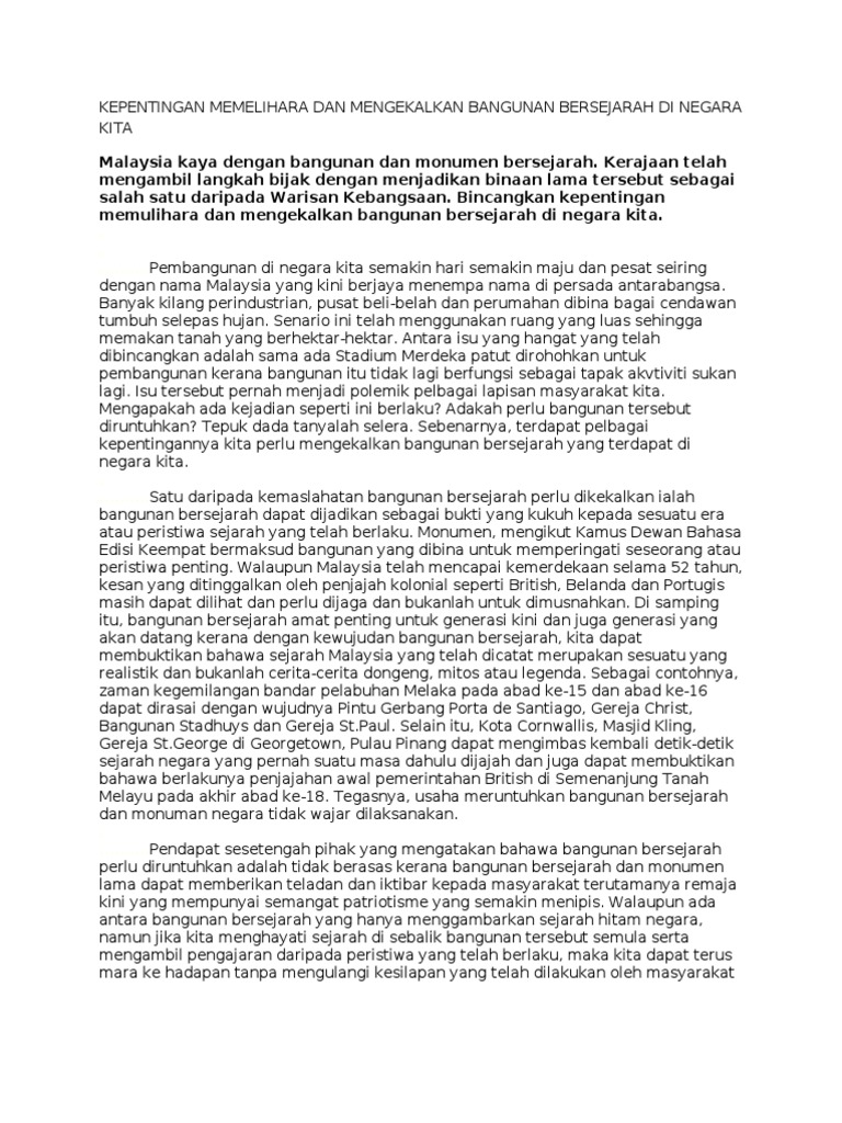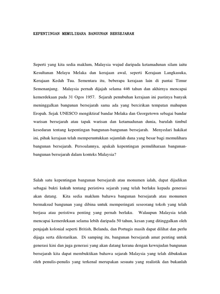 Doc Kepentingan Bangunan Bersejarah Di Malaysia Yeshe Dolma Ani Academia Edu