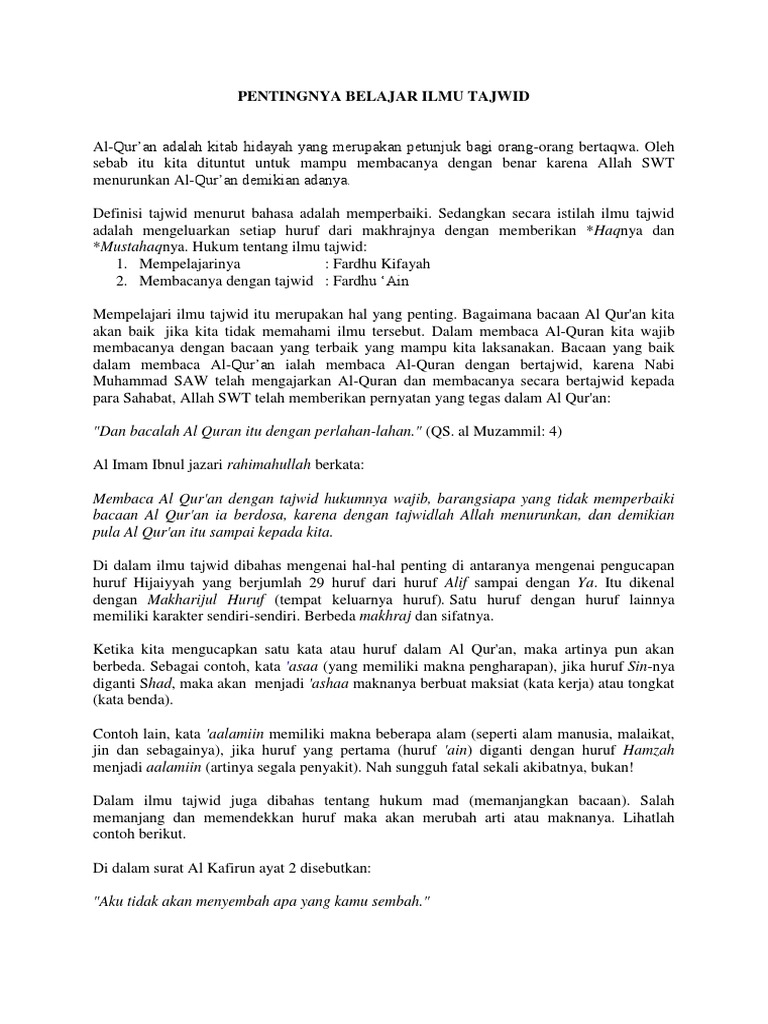 Kepentingan Mempelajari Ilmu Tajwid Pdf