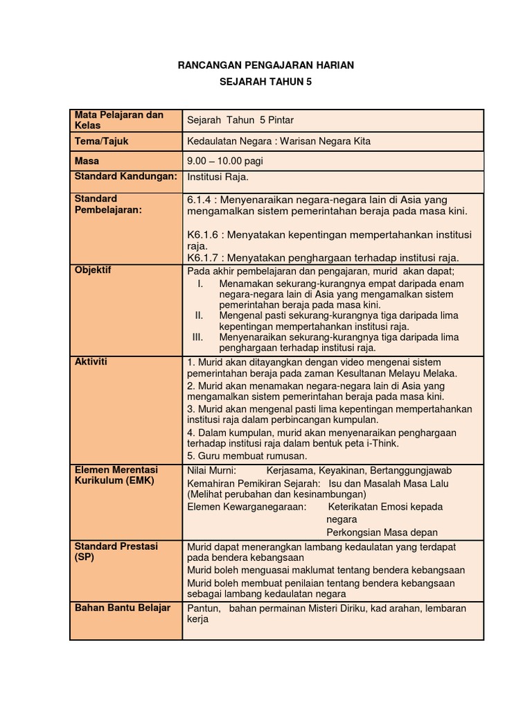 Rancangan Pelajaran Tahunan Sejarah Tahun 5 2018 K 6 1 5 Menyatakan Kepentingan Taat Setia Kepada Raja Objektif