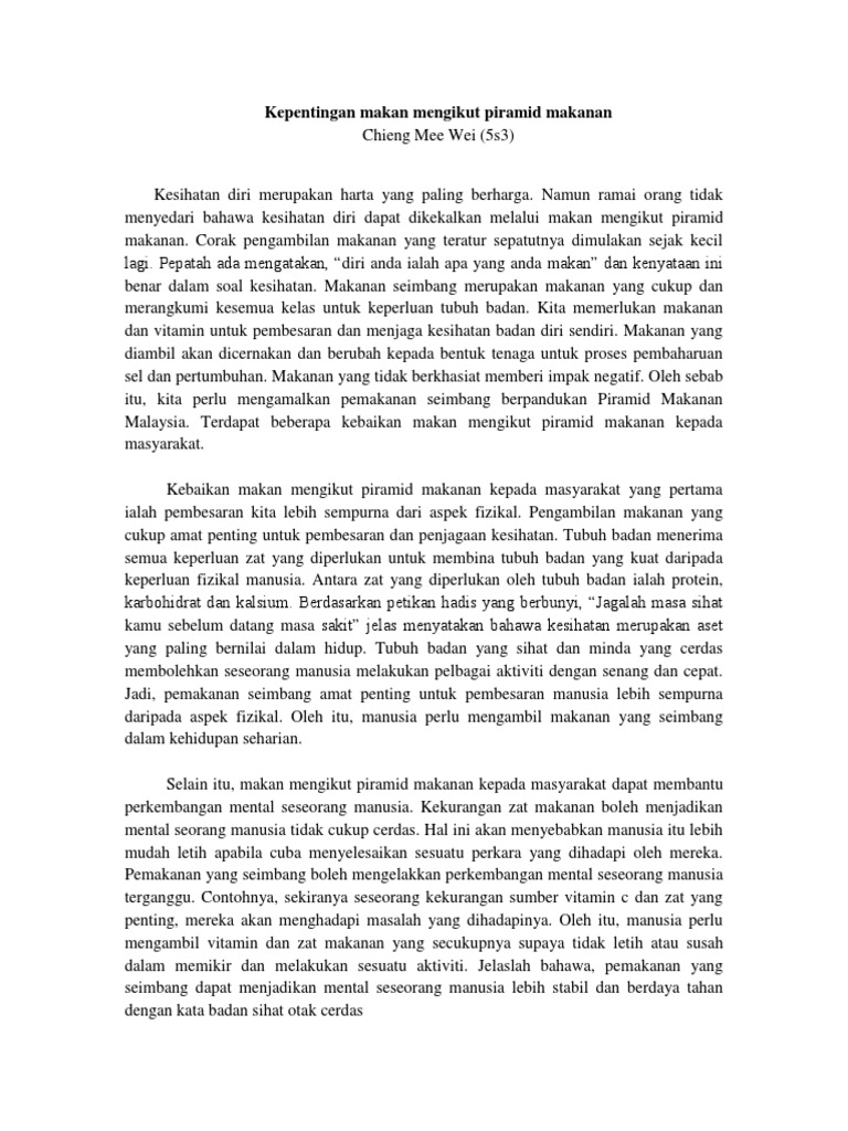 Bahasa Melayu Spm Kepentingan Makanan Seimbang