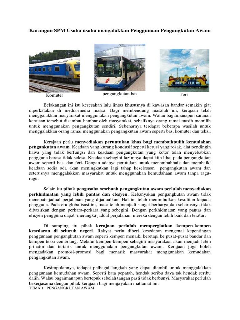 Karangan Spm Usaha Usaha Mengalakkan Penggunaan Pengangkutan Awam Docx