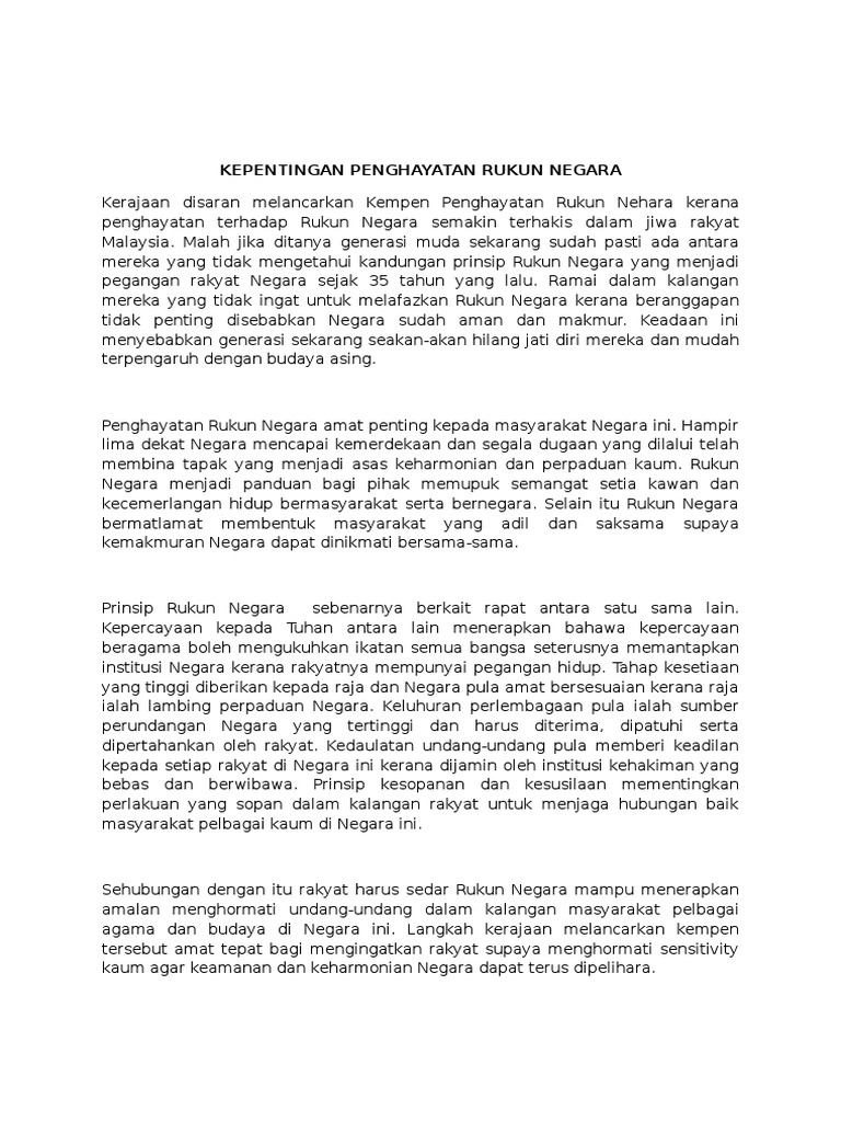Kepentingan Penghayatan Rukun Negara Download Docx