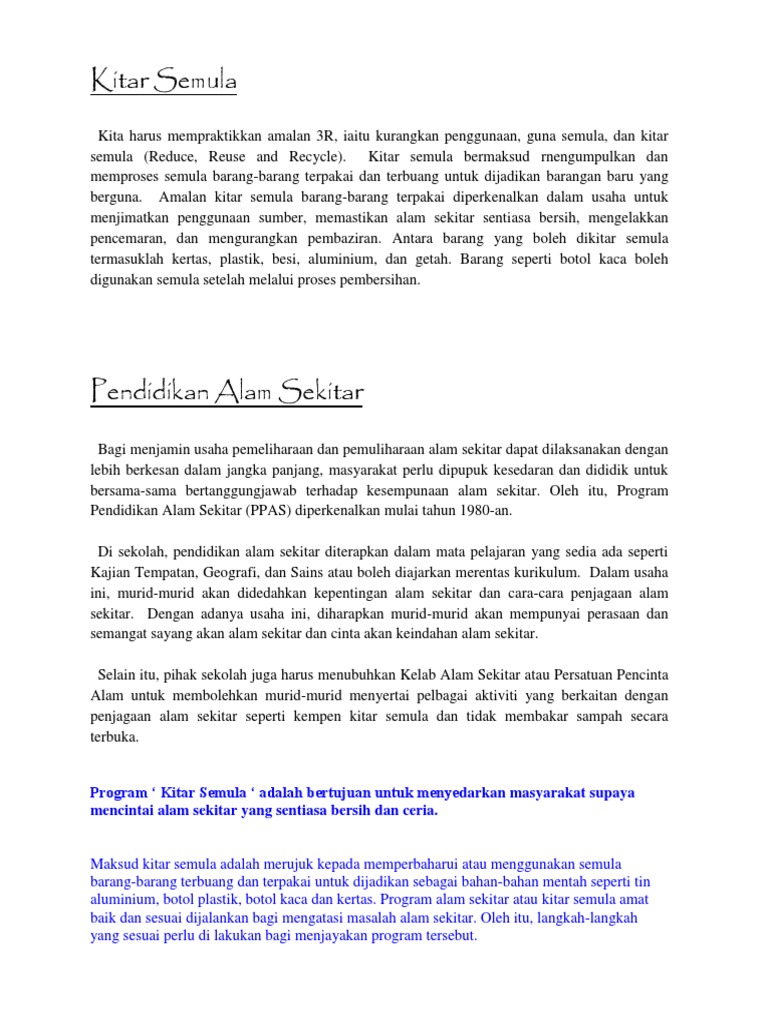 Contoh Karangan Faedah Program Kitar Semula Schoolnjc S Blog