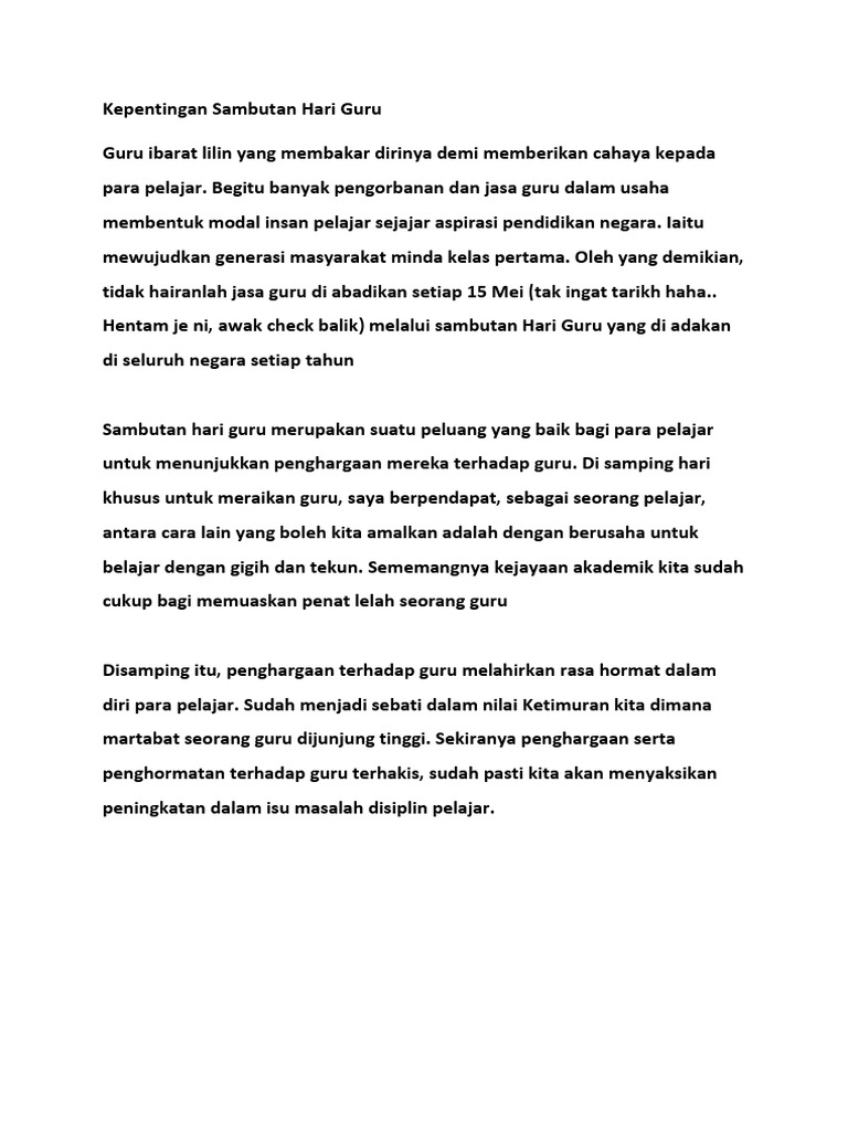 Kepentingan sambutan hari guru. Hari guru akan dis ambut pada tarikh 16 mei setiap tahun. Sesungguhnya guru haruslah dihargai kerana merupakan pencorak kepada kejayaan pelajar. Bagaimanapun hari guru peringkat kebangsaan disambut pada hari yang berbeza berdasarkan sejarah tersendiri. March 19 2019 keyword tips untuk.