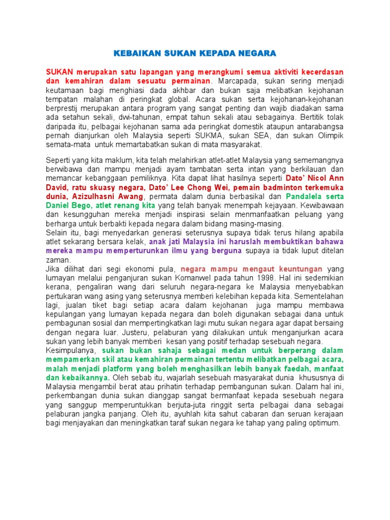Point Form Kebaikan Sukan Kepada Individu Masyarakat Dan Negara